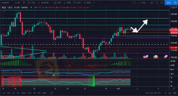 黃金現價1737附近位置可以做多單,防守1734附近位置!並且上看1744、1754。