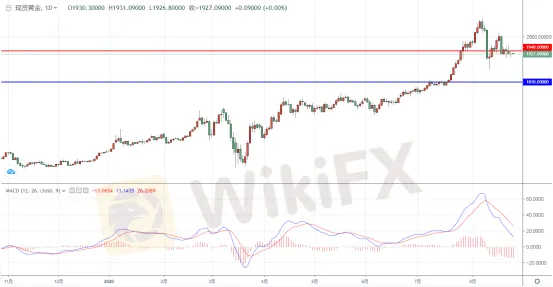 若最終收在1920美元下方,將進一步削弱短期結構,加大跌向關鍵支撐位1862美元(8月12日的峰值低點)的風險,跌破該支撐位意味著進一步修正。