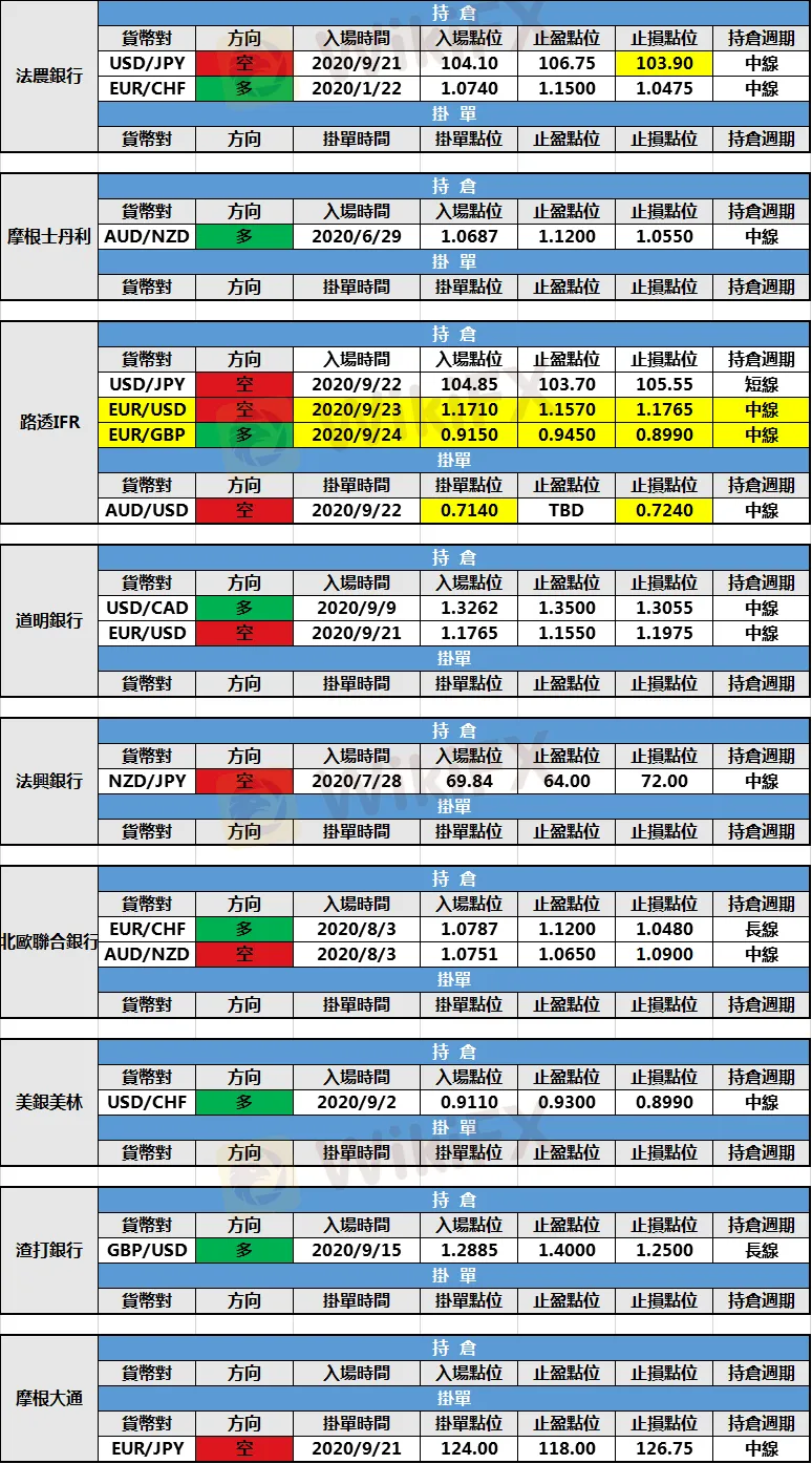 (1)法農銀行修改美元/日元空頭持倉止損點位至103.90。
