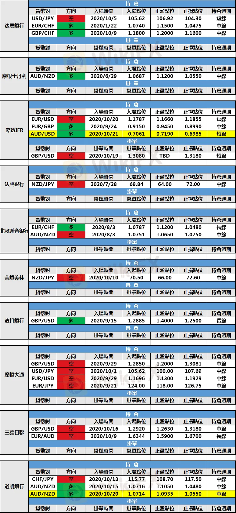 (1)道明銀行新增澳元/紐元多頭持倉,入場點位1.0714,止盈點位1.1050,止損點位1.0550。