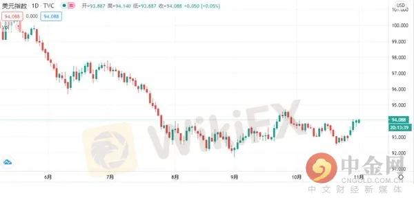 摘要:週一(11月02日)亞洲時段,美元指數呈現震盪上漲走勢,現交投於94.08一線。