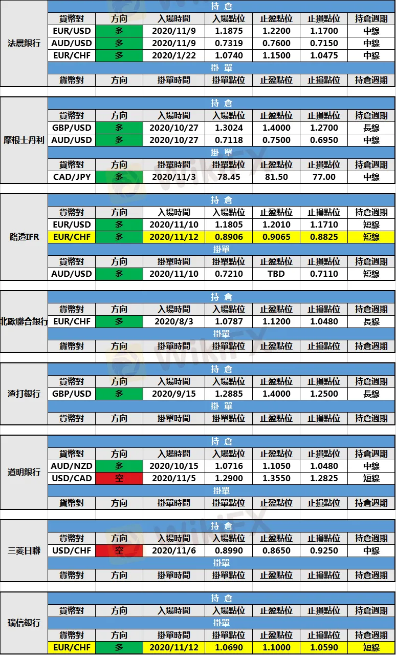 (1)瑞信銀行新建歐元/瑞郎多頭掛單,掛單點位1.0690,止盈點位1.1000,止損點位1.0590。