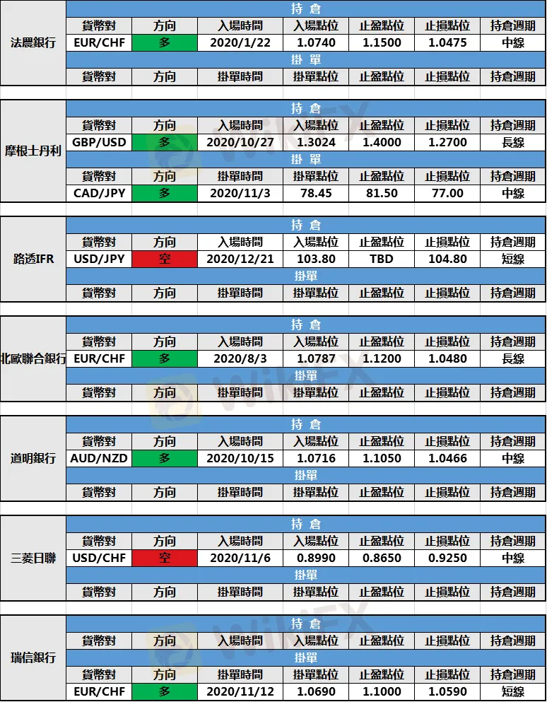美元加速走跌,非美貨幣強勢上揚,投行持倉及掛單依舊不變。