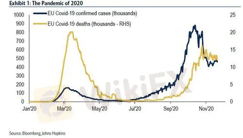 3月至5月的第一波疫情高峰引發了金融市場崩潰、封鎖和衰退;致命程度較低的第二波秋季則並未再引發大規模的恐慌。