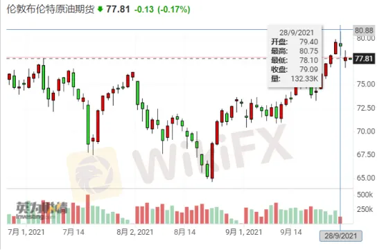 9月以來,美國天然氣期貨價格上漲了26%,較年初上漲了一倍多。布倫特原油期貨週二(28日)盤中一度突破80美元/桶,接近三年高位。