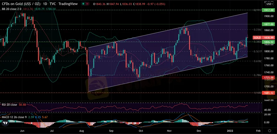 Gold prices could continue to rise until they reach the upper bound of the ascending channel in which they seem to have been oscillating since mid-December, and then eventually reach the November high at $1877.