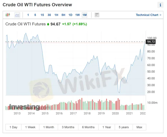 上周五,國際基準布倫特原油上漲3.3%,收於每桶94.44美元;美國主要價格西德克薩斯中質原油(WTI)價格上漲每桶3.22美元,收於93.10美元。