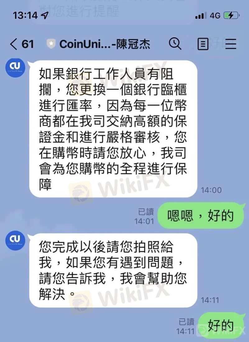 某天,群組裡一位成員推薦男子投資加密貨幣,並聲稱有個很容易賺錢的平台CoinUnion,在那裡投資完全是「低風險高報酬」。男子聽了十分心動,於是在對方的指示下申請帳號,並且入金購買加密貨幣。