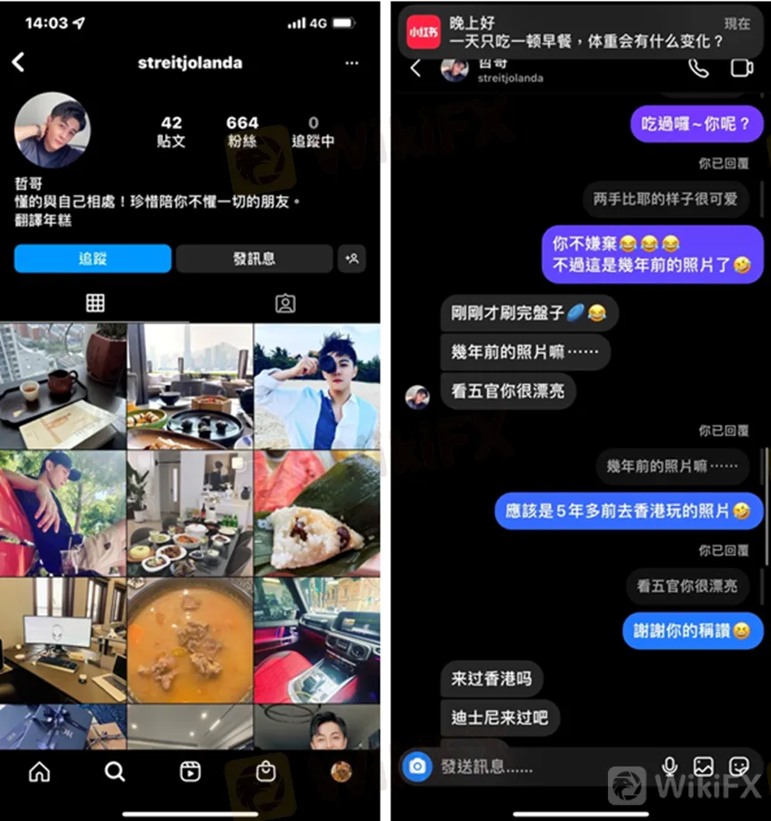 7月下旬,受害者在IG上認識一位叫「哲哥」的網友,對方主動傳訊息搭話,開頭就稱讚她很漂亮,並且一直積極找話題。當他得知受害者曾到香港旅遊,便自稱是香港人,以此拉近雙方的關係。
