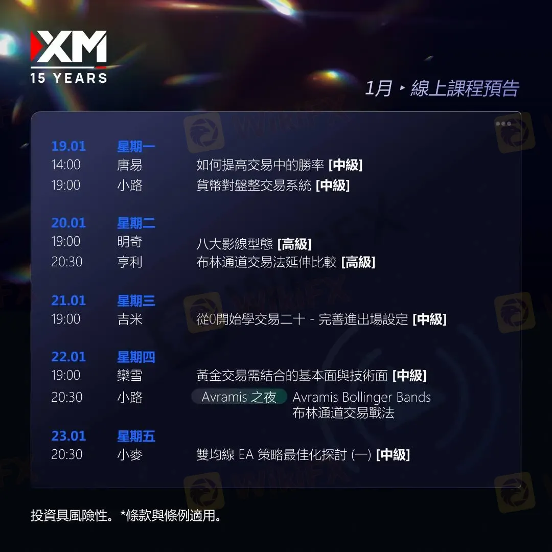 |XM| 中文線上直播講座,下週預告(1/19-1/23)