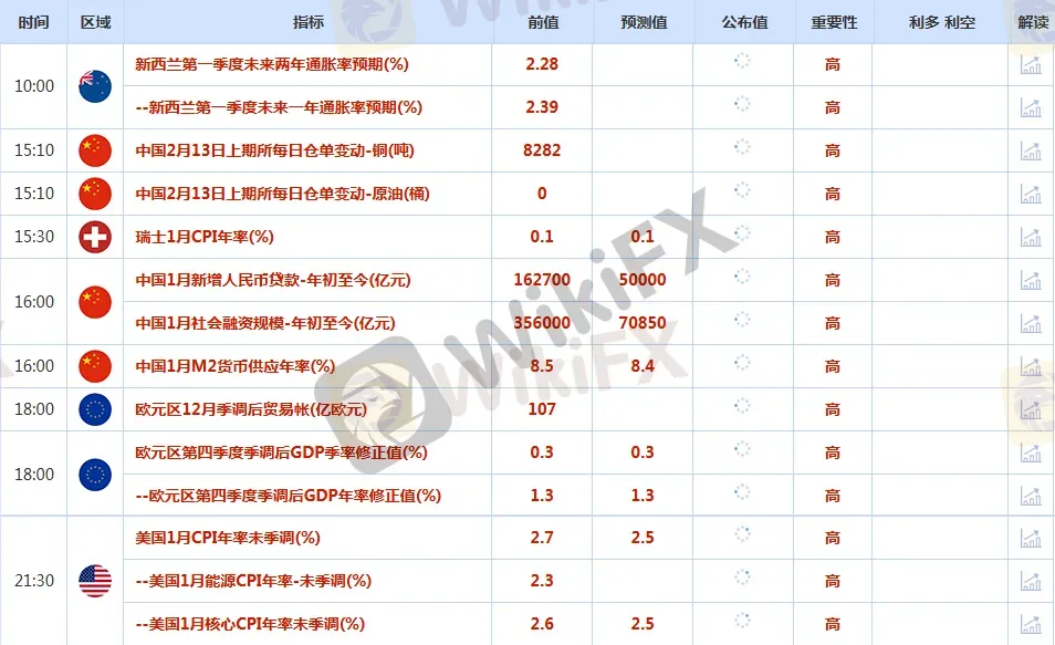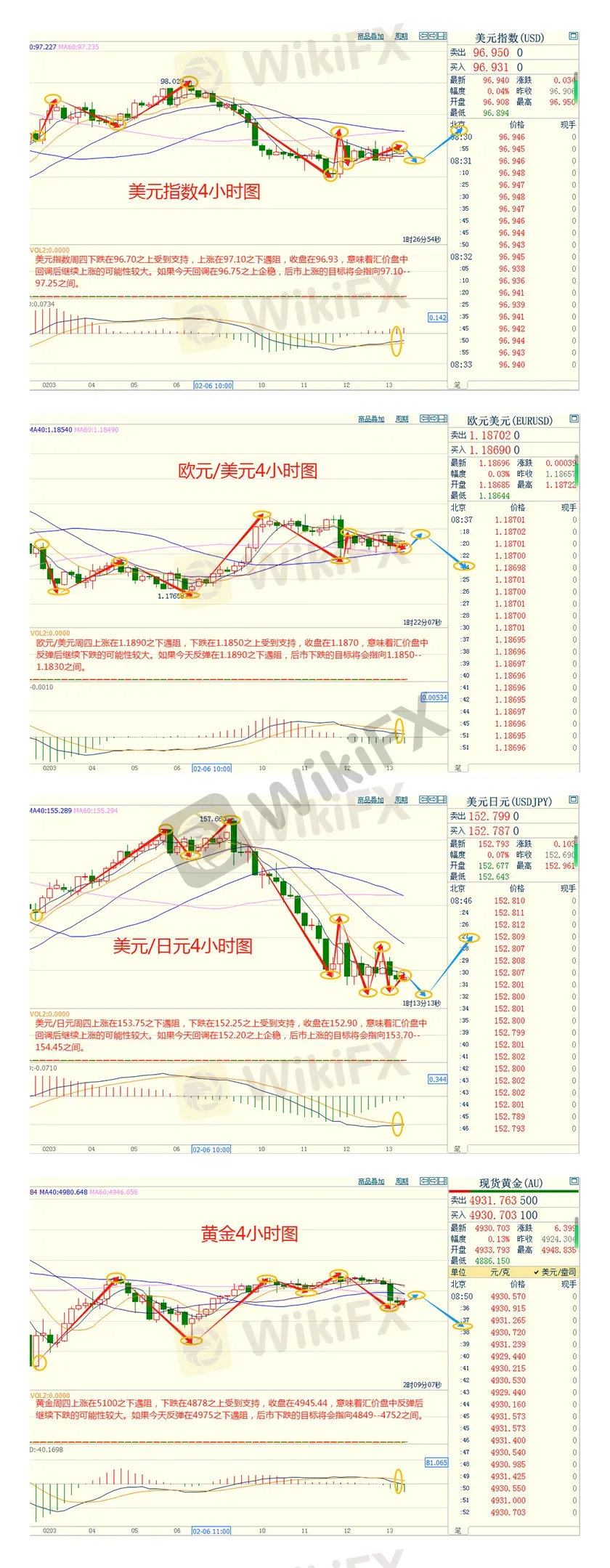 摘要:CWG Markets市場資訊 2026年2月13日(週五):匯訊摘要:週四,在關鍵的CPI數據公佈前夕,美元指數橫盤震盪,日內基本持平,收報96.84。由於AI恐慌重襲引發科技股拋售,美債獲避險資金流入,收益率全線下挫,基準的10年期美債收益率收報4.102%,對美聯儲政策利率敏感的2年期美債收益率收報3.456%。週四(2月12日)現貨黃金以一根超過3%的巨陰線,擊穿了5000美元這一剛剛站穩